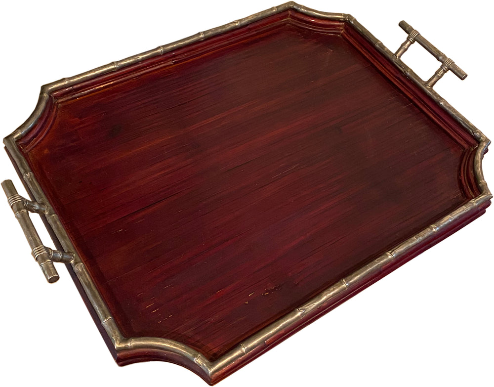 Impressive Maitland Smith faux bamboo tray. Silver plate bamboo form and handles.