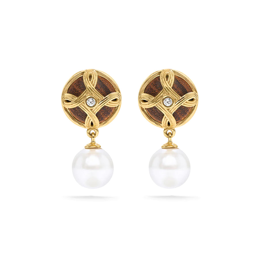 Monique Drop Earrings in Pearl and Teak