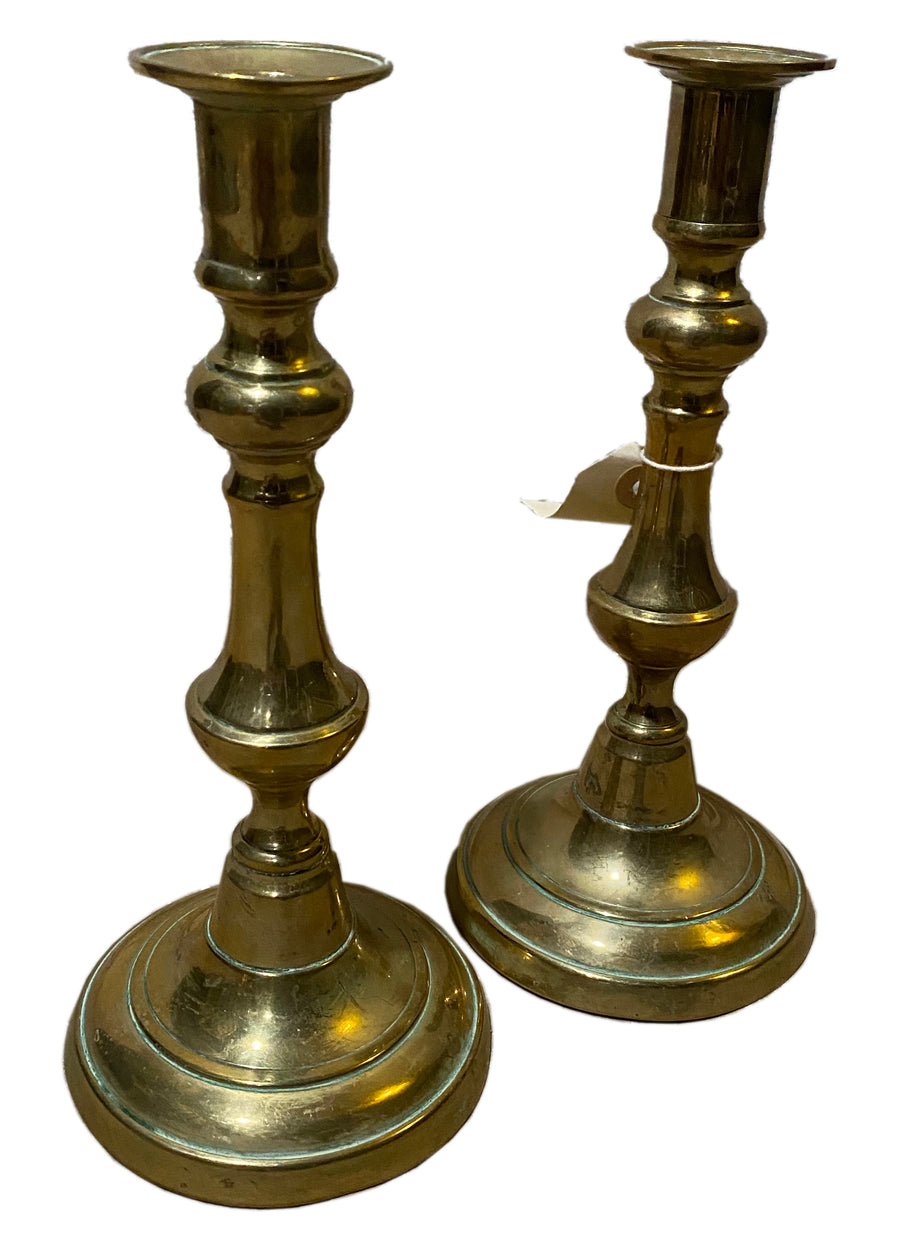 Antique Pair of Queen Anne Spun Brass Candlesticks