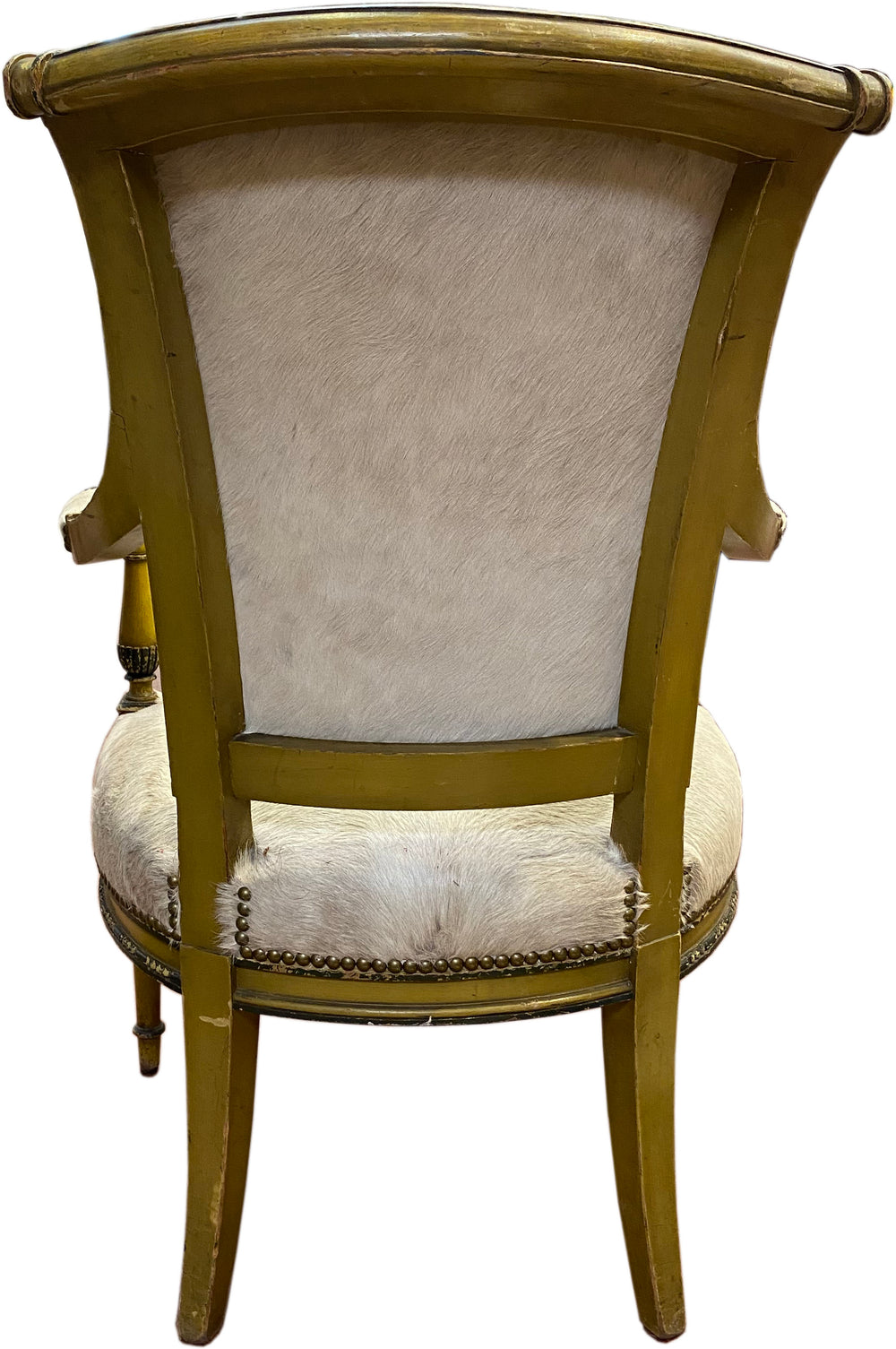 Vintage Neo-Classic Arm Chair. The upholstery is a fabulous Palamino hide and the painted finish has a very nice patina.