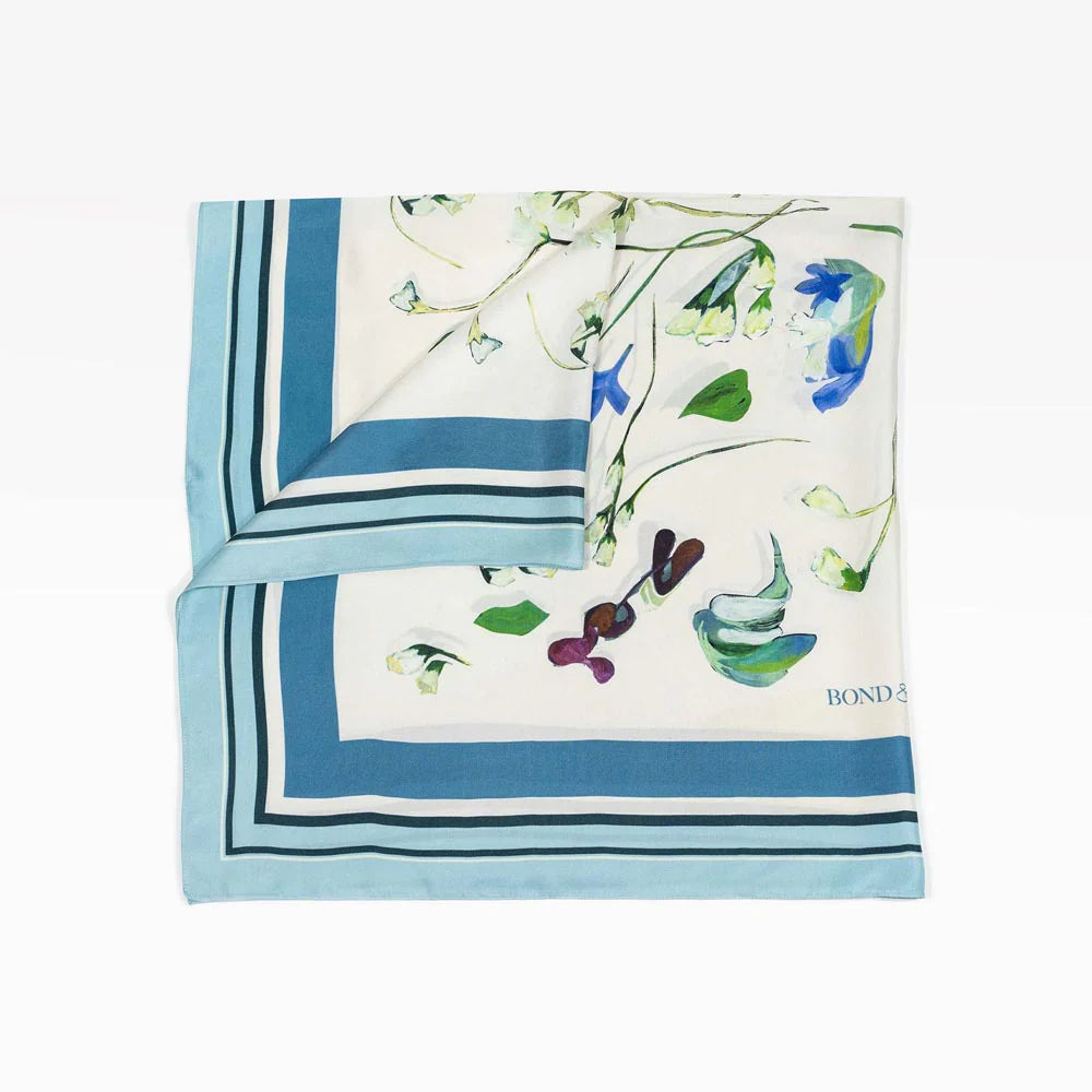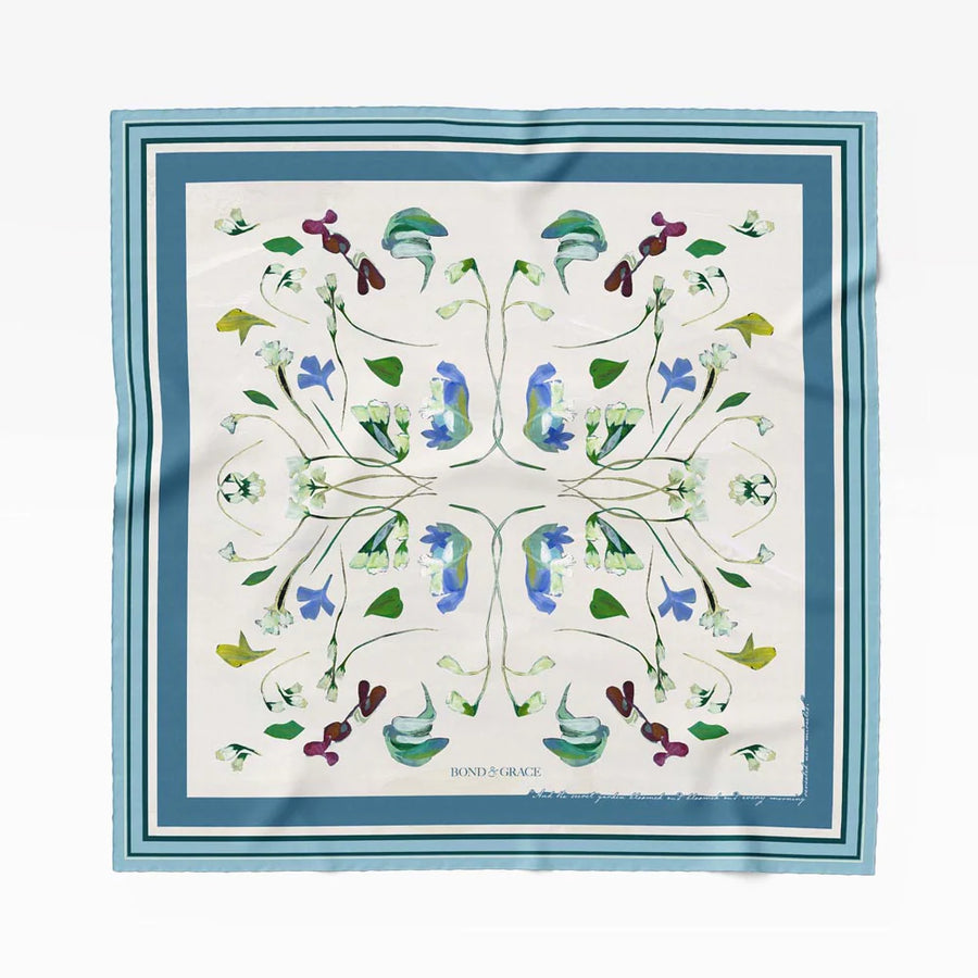 Wear the joyful spirit of springtime revival year-round. This enchanting silk scarf draws inspiration from The Secret Garden and its themes of health, rebirth, and the transformative power of nature. Featuring a mirrored motif drawing from the original Artwork Awakening by Artist Julia Hacker, delicate stems and floral petals intertwine.
