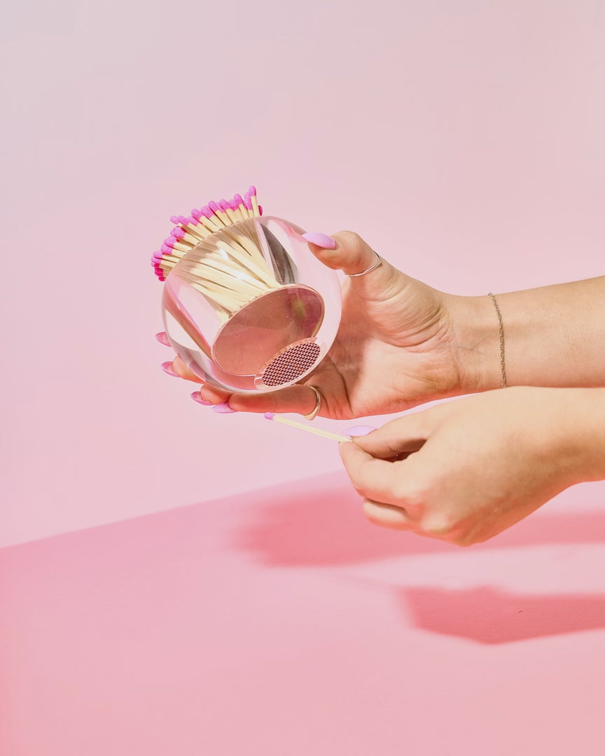 Get fired up with these Acrylic Match Strikers! This acrylic match strike is the perfect accessory for your coffee table, desk, or any space that could use a little flair. It features a strike pad on the bottom and comes with 140 matches. Keep this baby ready for any occasion, let's get lit!
