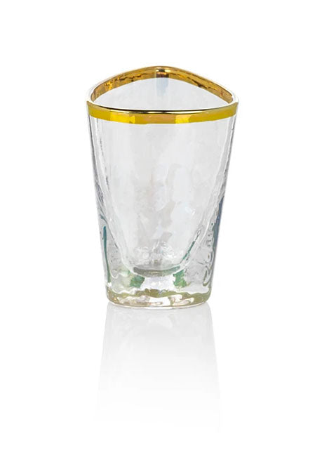 Mouth-blown glass with hammered texture and hand painted 24K gold rim.