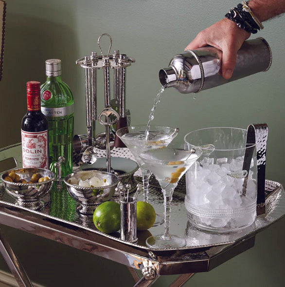 Hammered stainless steel bedecked with a tidy trimming of simple thread, this cocktail shaker will alight your inner mixologist.