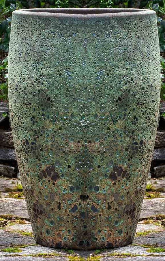 The planters are fired at high temperatures to increase resistance against frost and enhance durability. Variations in firing, color, size, and crackling are natural outcomes of the hand-made and hand-glazed production process. The containers are glazed with natural, rather than chemical, ingredients, resulting in a unique color for each piece.