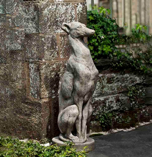 The greyhound makes a striking standalone accent or a sophisticated pair flanking a path or doorway. Crafted from durable cast stone with a weathered finish, it is built to endure the elements while adding enduring charm to your landscape.