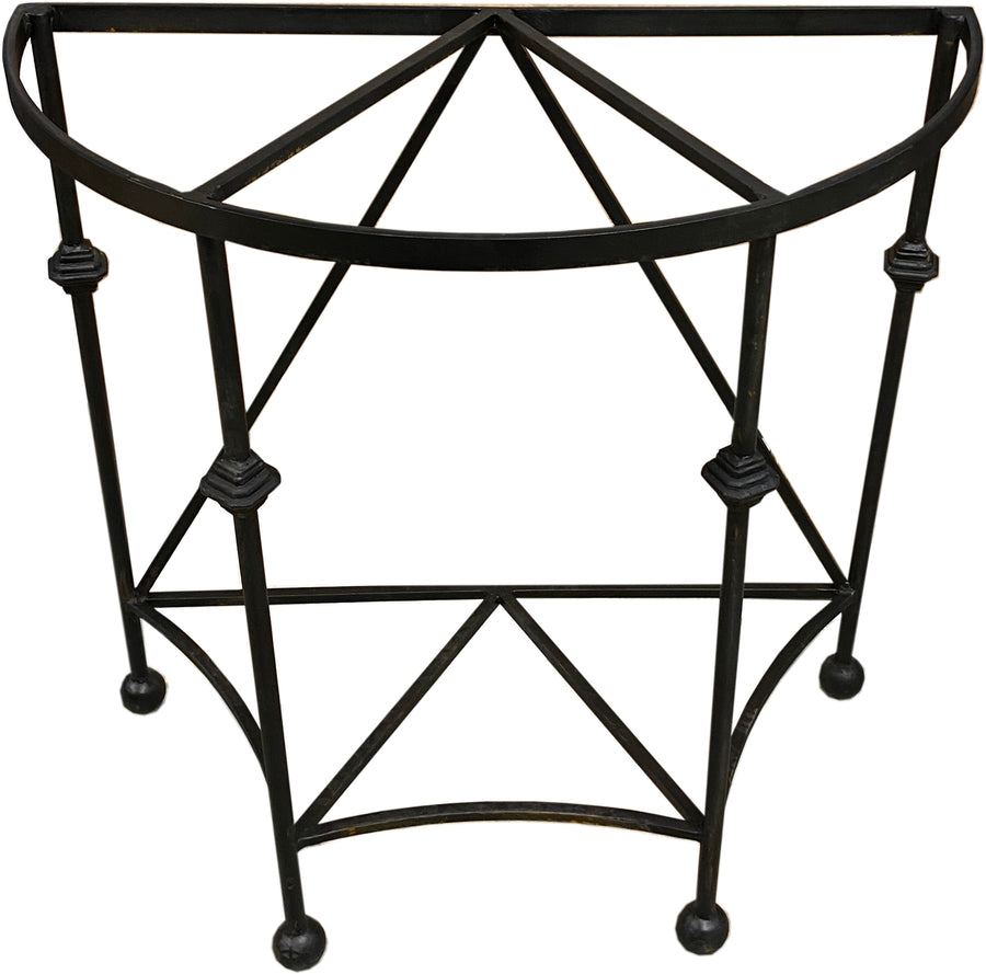 Heavy black iron demi-lune with glass top. Perfect for indoors or out.