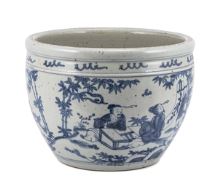 B&W Porcelain Pot with 7 Stages of Bamboo Grove