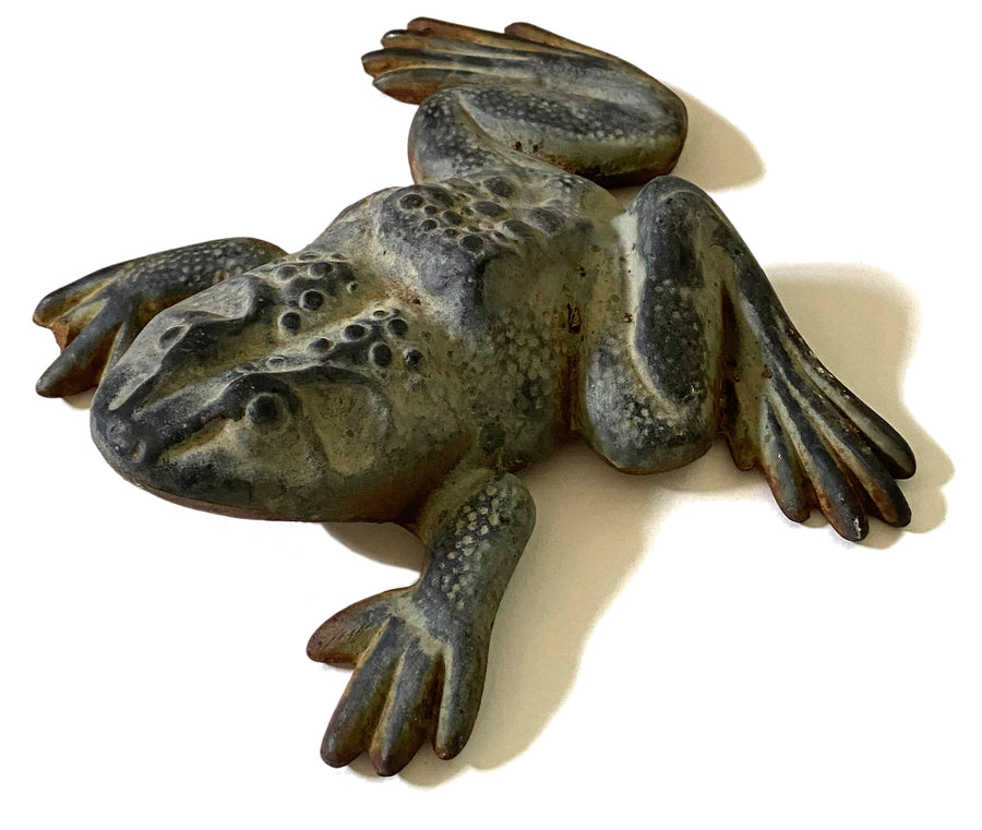 A heavy frog poised to leap serves as a doorstop, paper weight, desk or garden ornament.