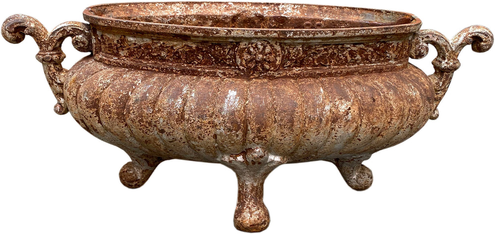 Antique French cast iron footed oval planter or jardiniere, Assorted styles and sizes. Please visit us to choose.