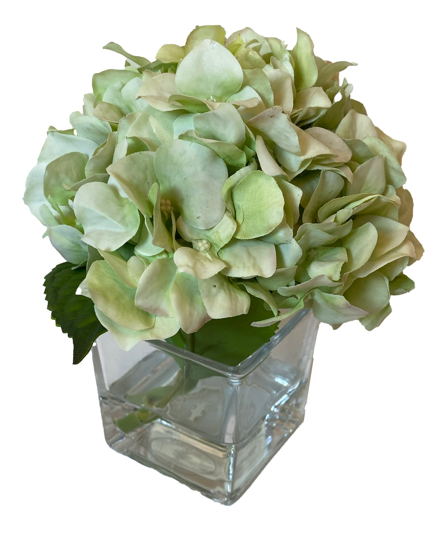Green Hydrangea in 3" Glass Cube
