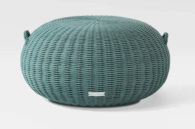 The Juno Pouf - a fun and functional piece that can be used with any collection as extra seating or ottoman. Juno Poufs are crafted with an aluminum frame covered with high density padding protected by a waterproof cover and finished with woven rope. The top is supported underneath by webbing to add extra comfort when used for seating. The Juno Collection of poufs are offered in two sizes and five lovely color options: Pebble Beach, Pink Sand, Espresso, Quiet Shade and Blue Surf.