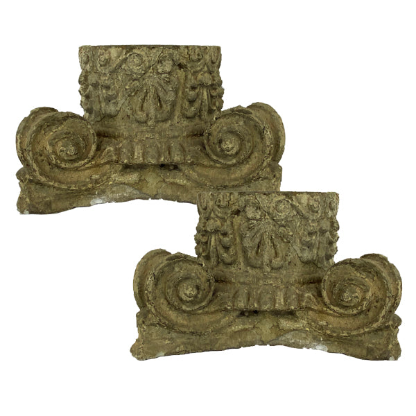 Pair of Greek or Roman Neoclassical style Ionic column capitals. This piece of architectural salvage would make a lovely objet d'art, sculpture, garden ornament, or stand for a sculpture or plant.