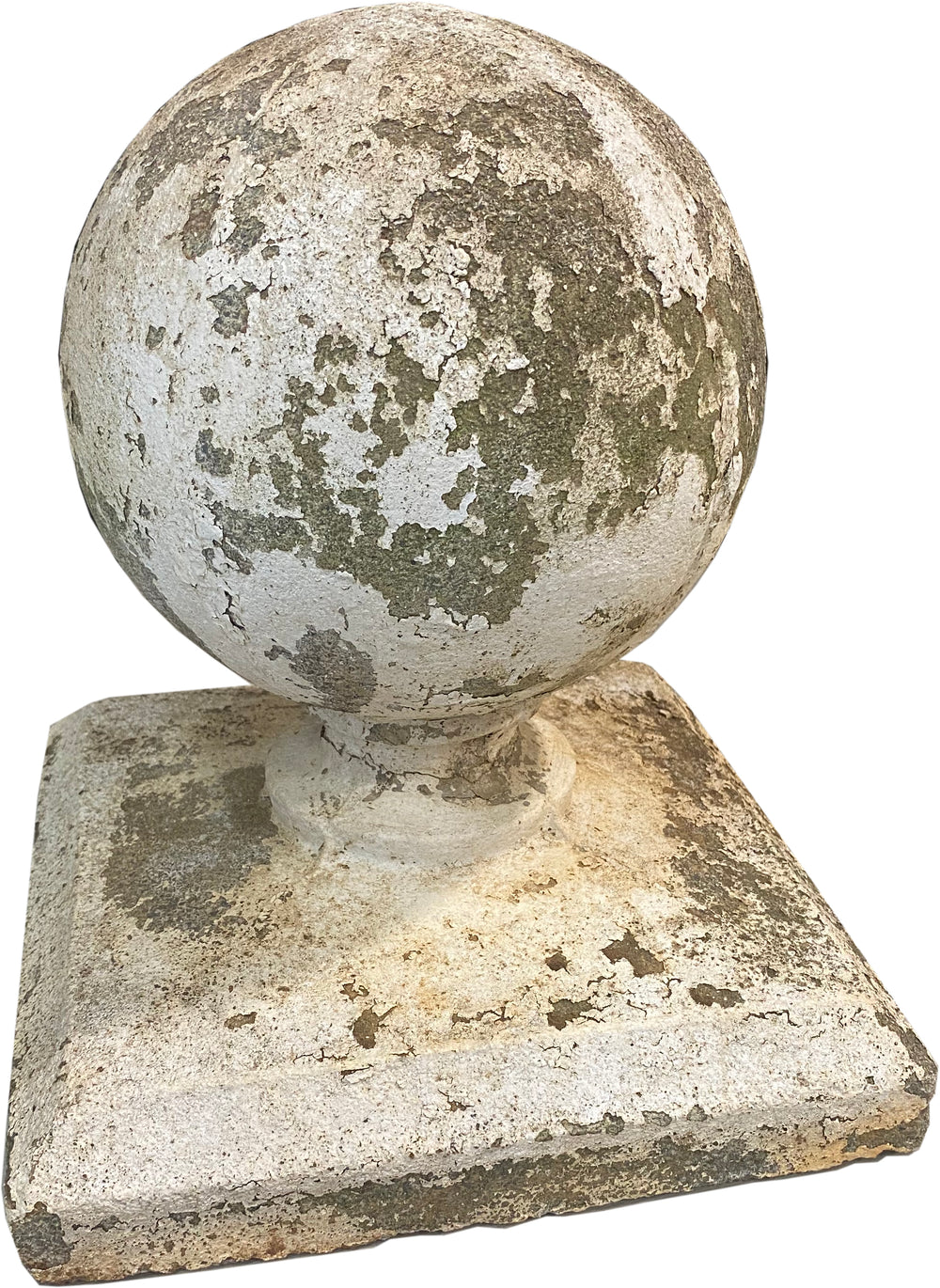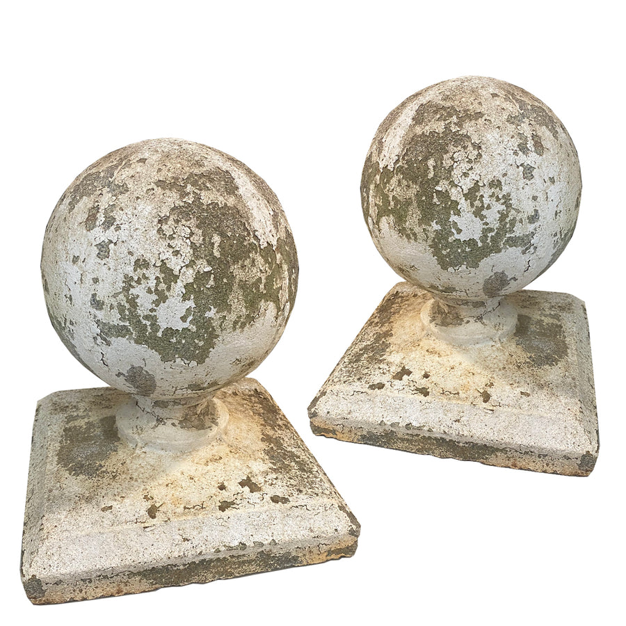 Pair of painted concrete finials. These exhibit great character and patina from years of elements exposure. A beautifully classic accent whether used indoors or outside.
