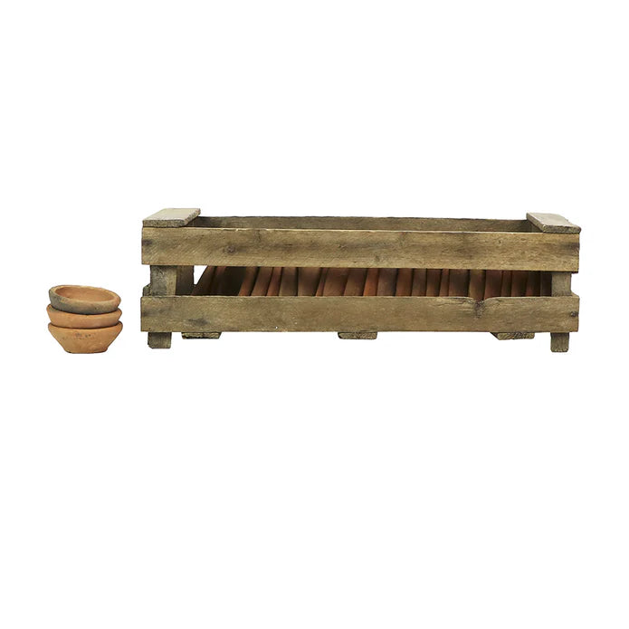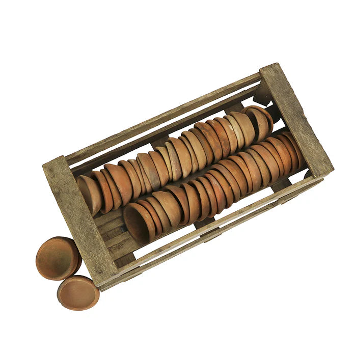 Earth-conscious and aesthetically pleasing, the Planters Seedling Pots with Crate are the perfect seed starter kit for seasonal gardeners. Each little clay pot is hand made of clay and comes in a storable wood crate. These small pots can also be used for organizing crafts and beads. Let the fun begin!