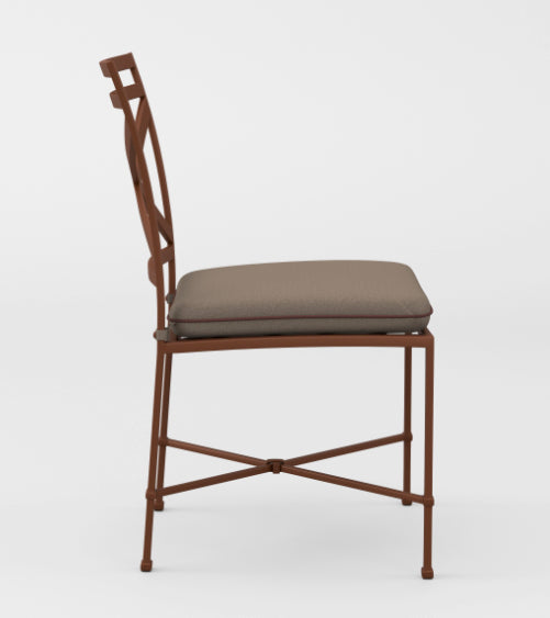 The Side Chair from the Venetian Collection displays a refined silhouette highlighted by timeless Neoclassic details. The x-back and cross-stretcher are framed by elegantly scaled rectangular lines that accents eclectic living scapes that require a more formal design presence. With over 140 fabric options available for the seated cushion, the Venetian Side Chair transforms its brilliant design to match even the most demanding spaces.