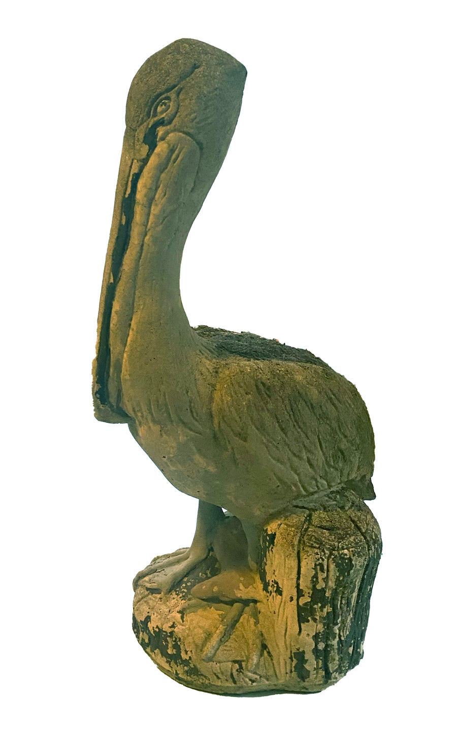 Bring a touch of coastal charm to your outdoor space with this vintage concrete pelican statue. Standing a stately 20.5 inches high, this weathered bird perches on a textured piling base, adding character and seaside whimsy to gardens, patios, or porches.
