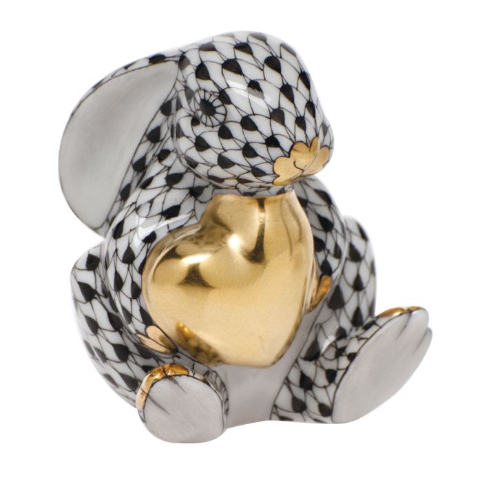 A new take on the beloved Bunny with Heart, the artists at Herend have chosen a White Bunny to contrast the fish net painted heart, available in either Blue or Pink. Handmade and hand-painted porcelain from Hungary, with 24k gold accents.