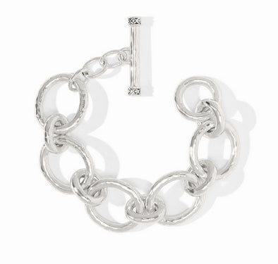 A luxurious bracelet of lightly hammered links, finished with a toggle.
