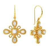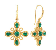 Graceful and timeless, the Monique Gem Dangle Earrings by Capucine de Wulf feature an elegant cross-inspired design with delicate looped detailing. Each piece is set in radiant 18k gold over brass and adorned with luminous gemstones—choose from the iridescent shimmer of Mother of Pearl or the rich green beauty of Malachite. Lightweight and fluid, these earrings sway gently with every movement, adding a touch of sophistication to both everyday wear and special occasions.