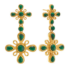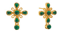 Versatile and eye-catching, the Monique Gem Double Drop Earrings by Capucine de Wulf feature an intricate cross-inspired design adorned with richly hued gemstones, set in radiant 18k gold over brass. The removable lower dangle allows you to switch between a bold statement look and a more understated style, giving you two looks in one pair. Whether worn long for dramatic elegance or short for everyday chic, these earrings bring timeless sophistication with a modern twist.