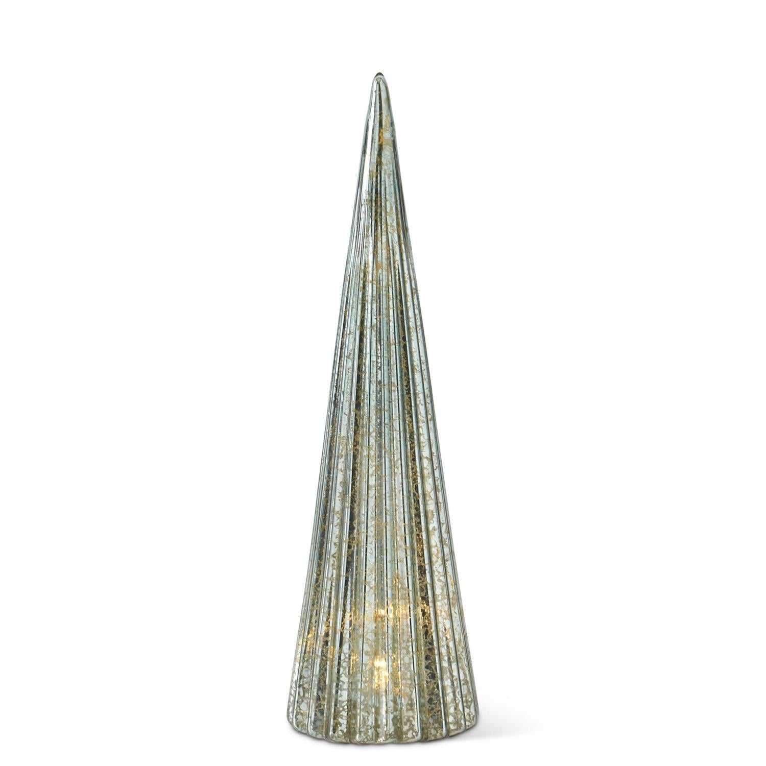 Illuminate your holiday decor with elegant shimmer and soft glow from this set of 3 Sage Green Mercury Glass Trees. Each tree features a tall, fluted silhouette with vertical ribbing and a beautiful antiqued mercury glass finish in a sophisticated sage hue. Warm white LED lights inside create a cozy ambiance, and the built-in timer allows for effortless, worry-free display.