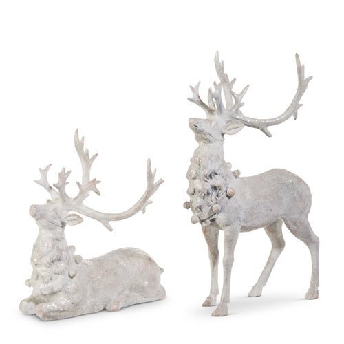 Whitewashed Glitter Deer – Set of 2