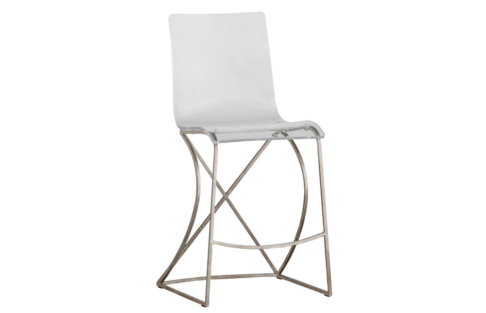 The transparent acrylic Johnson Counter Stool is the ultimate transitional piece for a kitchen counter. This metal counter stool fuses clear acrylic with a matte gold curvilinear base to create a modern feminine seating piece. For best care, avoid solvent based cleaners, and simply dust or spot clean with a soft damp cloth.