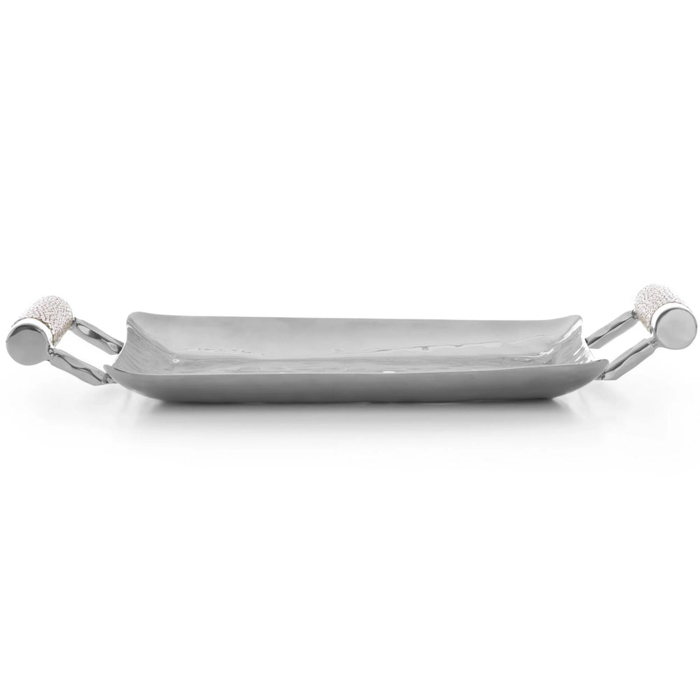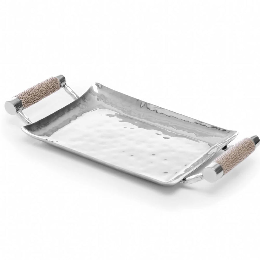 VIVO hand made, hammered stainless steel rectangle tray. Custom genuine shagreen covered handles.