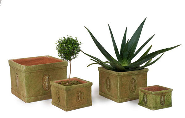 Our friend, Dimitri, is a charming yet elusive character who generally dwells somewhere at the edge of the garden and the Wild Wood. He’s rarely seen – usually at dusk if one is lucky. However, after imbibing far too much wine, he allowed that we might affix his image on some of our aged terra cotta planters. Hence, Campo’s new offerings. Dimitri is an odd fellow, but then again, so are we.