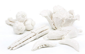 Giving new meaning to the phrase “farm-to-table,” these Blanc de Chine vegetables consist of produce you’ll definitely want to show off on your table and beyond. The tongue-in-cheek collection playfully depicts a range of farm-stand vegetables in precious Blanc de Chine porcelain, turning everyday food items into stunning works of art. From the delicately tangled roots of the garlic bulbs to the crisply undulating leaves of the cauliflower, the realism is astounding. Inspired by a similar set spotted at an antique shop in Paris, these porcelain vegetables elevate any kitchen or dining area with a sense of French farmhouse charm. Display together as an island centerpiece or place them in different areas of a countertop as a fun decorative motif.