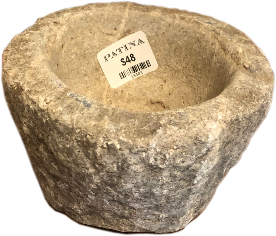 This rustic stone bowl is the perfect addition to a patio or parlor, depending on your taste. Hand carved with a naturally aged patina, each one is unique. Great as indoor accessories or outdoor planters.