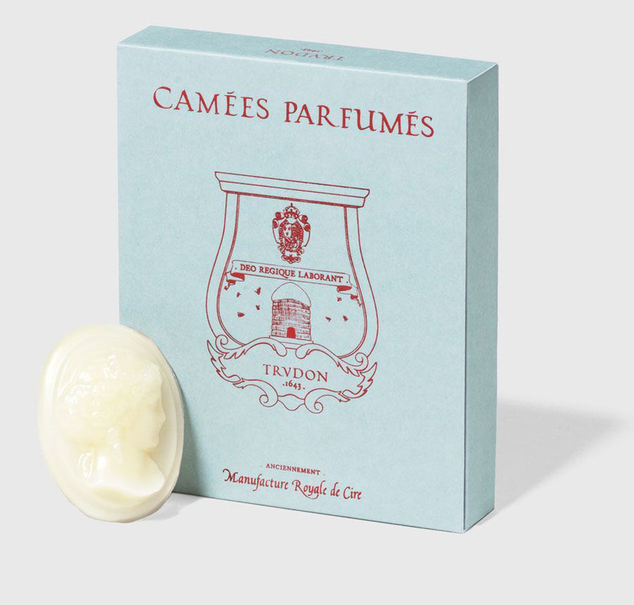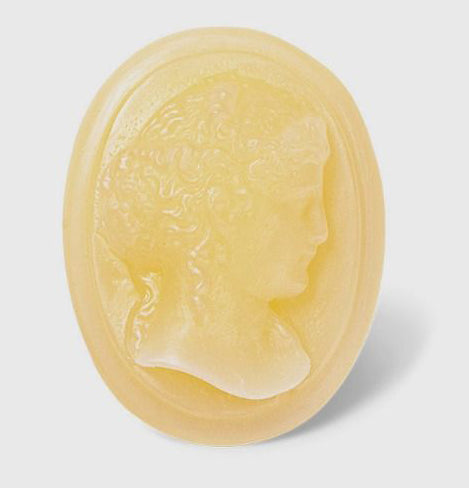 The scented cameo wax goes on the ceramic dish of La Promeneuse. Once the night-light is lit, the heated cameo will melt and spread its fragrance rapidly into the air.