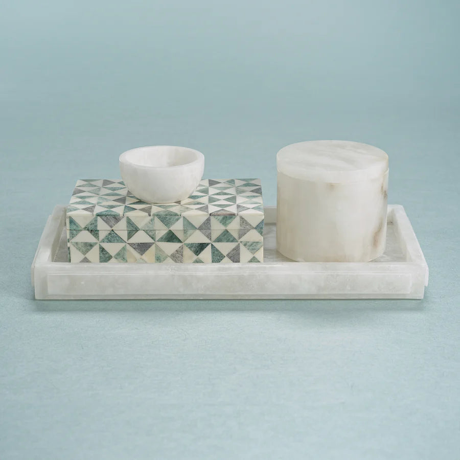 Crafted from high-quality alabaster, this tray is durable and stylish. Add a touch of elegance to your vanity while keeping your toiletries organized and accessible.