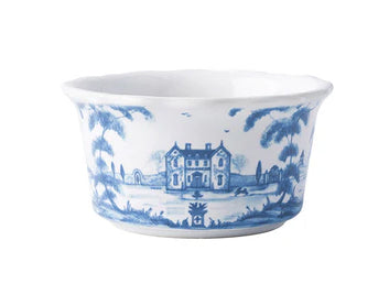 From Juliska's Country Estate Collection- Profusely practical and painted with the estate's landscape on a minuscule scale, these ramekins are reminiscent of the fine portrait miniatures that lovers would carry in their waistcoats and skirt ruffles. These versatile and petite gems will quickly become among your most cherished items from the kitchen. Featuring: Kite Fliers, Main House, Boathouse, and Tea Party Tent.