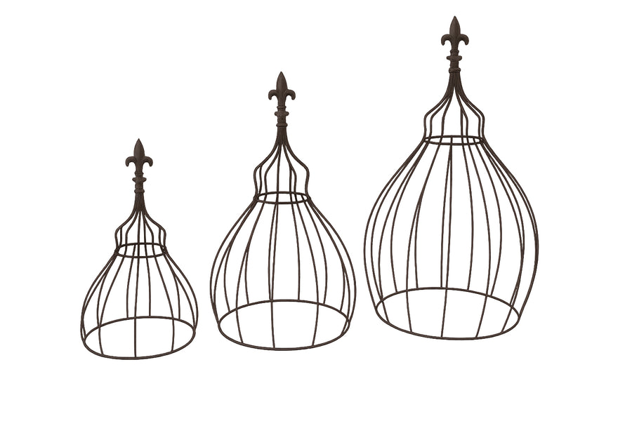 Add timeless charm and sculptural interest to your garden or indoor displays with these elegant wire topiary domes. Crafted from dark metal with a graceful teardrop silhouette and crowned with a classic fleur-de-lis finial, each piece brings a touch of vintage romance to your space.