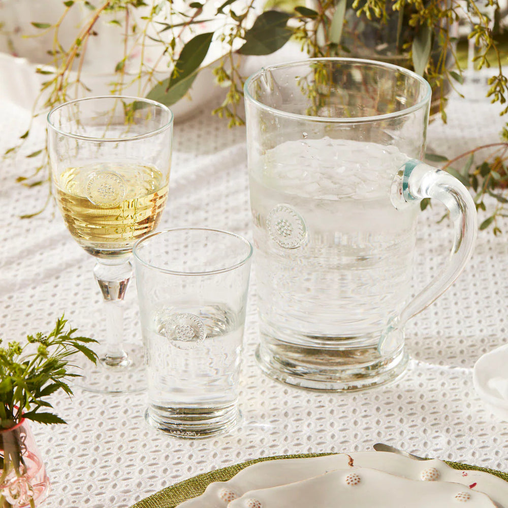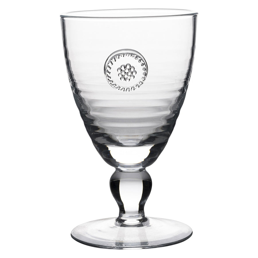 From the Berry & Thread Collection- Raise your glass in cheer! This footed goblet sets the stage for your exquisite celebration. Adorned with a sweet berry and thread medallion our goblet stylishly blends elegance and function.