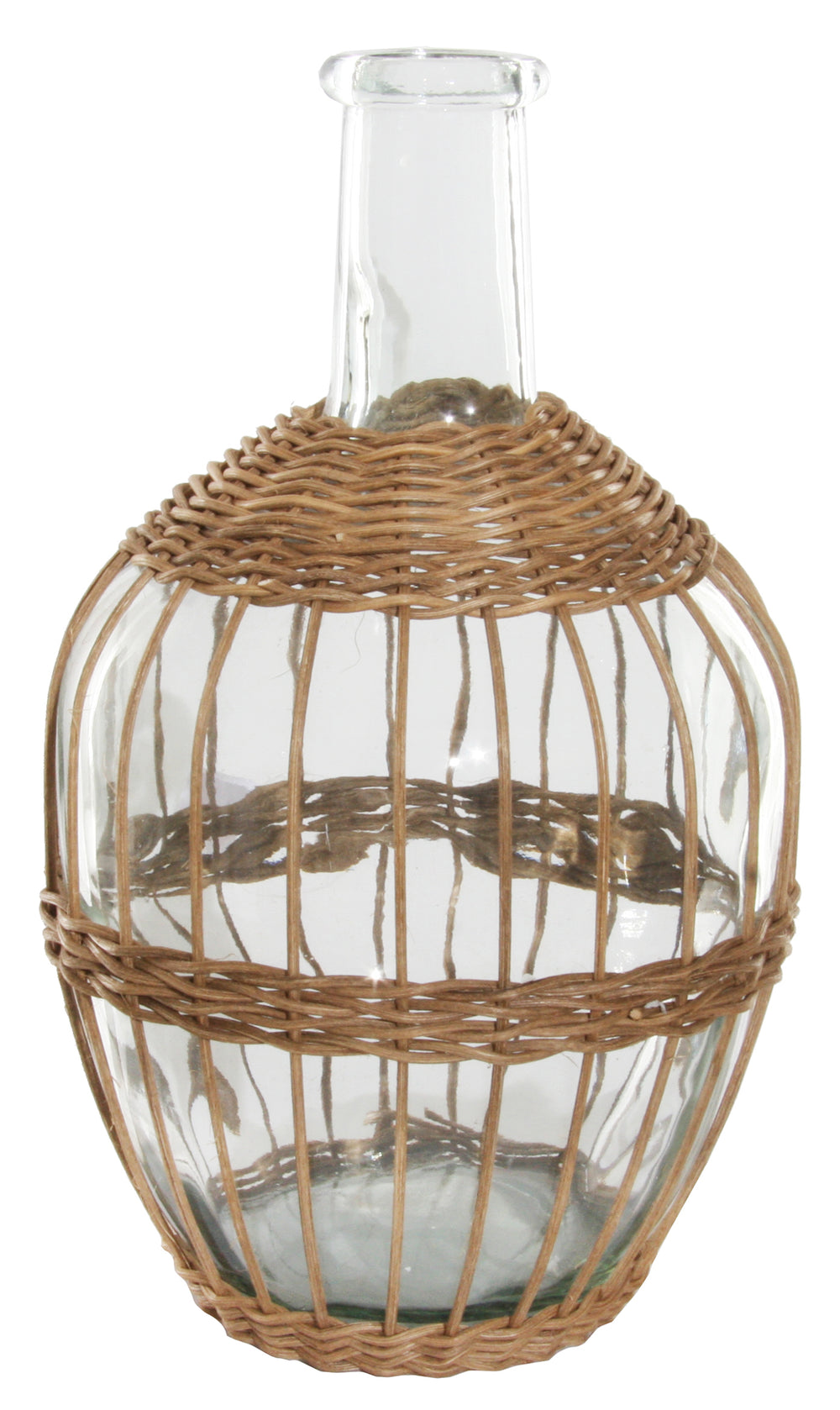 A beautiful blend of natural texture and organic elegance, this rattan-wrapped glass bottle brings a warm, artisanal touch to your home décor. Featuring a clear glass body encased in handwoven rattan, it adds an effortless, coastal-inspired charm to shelves, tabletops, or console displays.