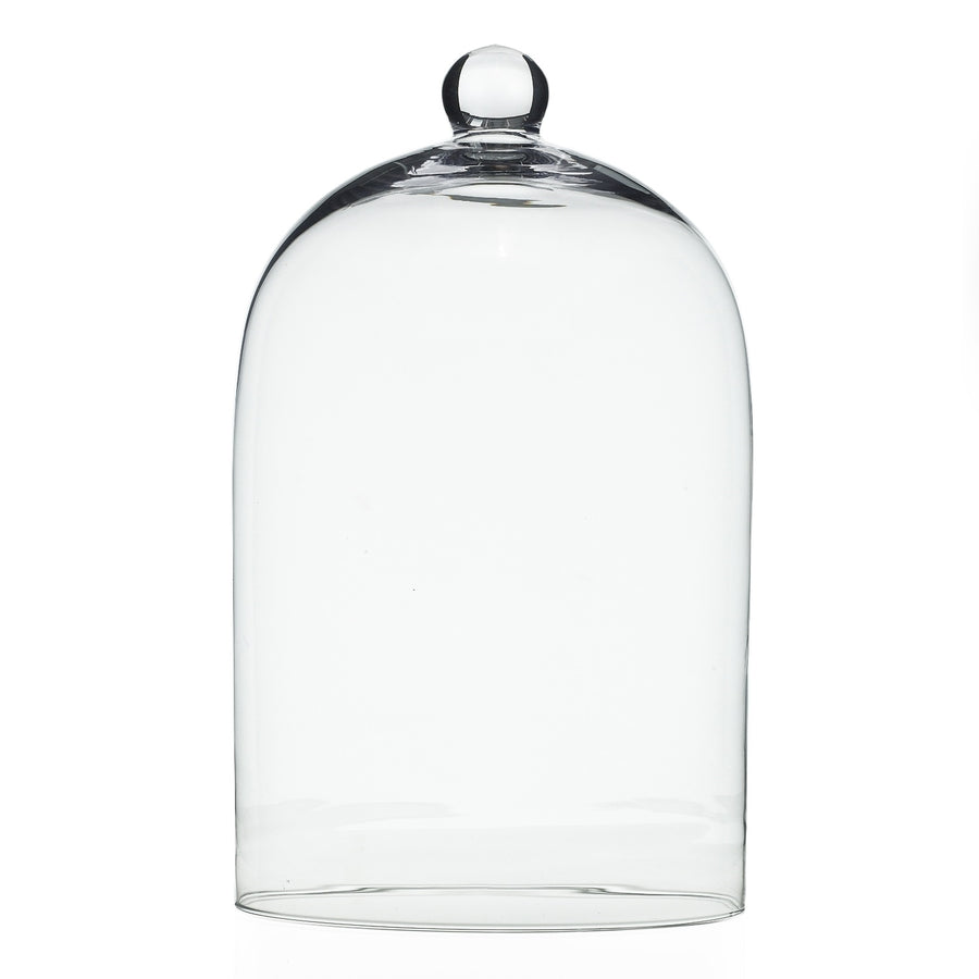 Handcrafted with crystal-clear glass and a smooth, knobbed handle, this cloche adds classic charm and sophistication to any setting—whether styled on a coffee table, console, or bedside tray.