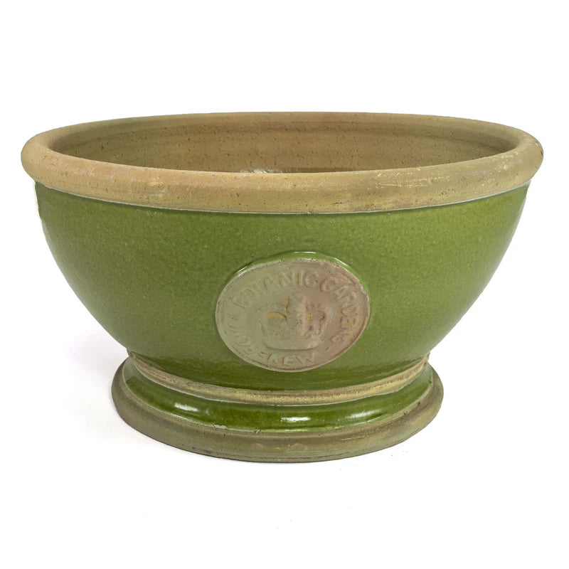Authentic English inspired footed bowl with the official seal of the Royal Botanical Gardens, Kew. This bowl is entirely handcrafted by Artisans, and feature 3 Kew seals! This is one of our favorites as it is so versatile. They are suitable for indoor use or outdoor use although we advise bringing them indoors during particularly frosty periods as they can crack. With each purchase of these beautiful pieces, funds are contributed to the gardens and its important, on-going work. Each item is individually crafted and therefore no two items are identical and minor imperfections are inherent and add to the beauty of these products.