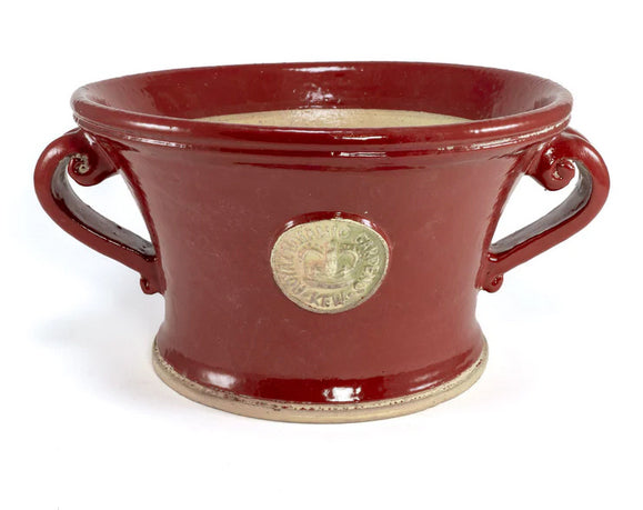 Most Popular- Authentic English inspired pottery with the official seal of the Royal Botanical Gardens, Kew. This Two Handled Pot is entirely handcrafted by Artisans, these beautiful pots are suitable for indoor use or outdoor use although we advise bringing them indoors during particularly frosty periods as they can crack. With each purchase of these beautiful pieces, funds are contributed to the gardens and its important, on-going work. Each item is individually crafted and therefore no two items are identical and minor imperfections are inherent and add to the beauty of these products. (NON DISTRESSED)
