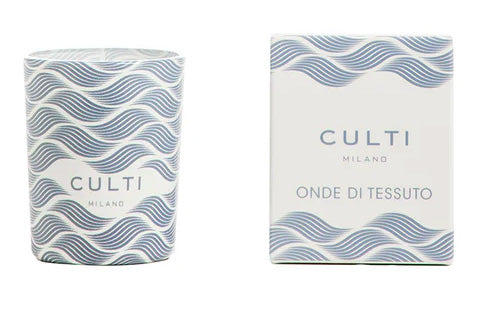 The play of ripples of the precious fabric inspired ONDE DI TESSUTO, a welcoming Limited Edition Capsule Collection, scented with a new version of Tessuto, the iconic fragrance of CULTI MILANO.