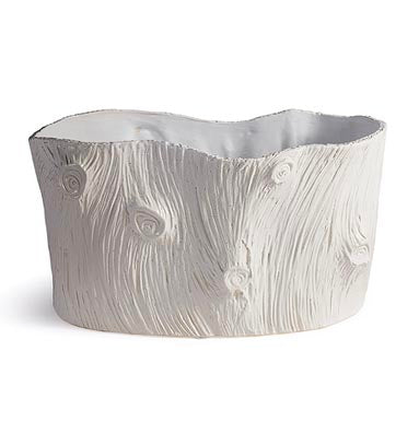 There’s the traditional interpretation of faux bois—and then there’s this. A bold reimagining of a classic, this handcrafted ceramic planter elevates natural texture with a sleek, modern twist. Finished in crisp white and etched with an organic tree bark pattern, this sculptural vessel is both timeless and contemporary.