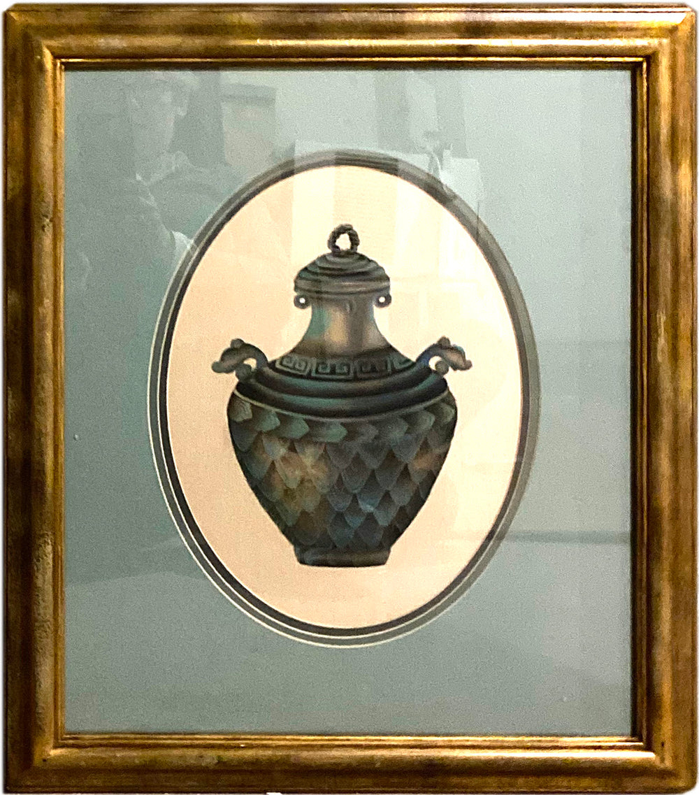 Vintage Woo Oriental vase, watercolor on silk