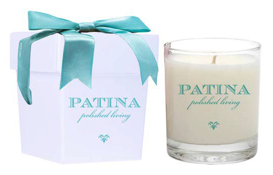 This cute little ode to Patina makes a perfect gift for any occasion and comes in a French Jasmine fragrance. The sultry perfume of jasmine petals are layered with soft white cashmere blossoms and the sweet mimosa flowers of Provence, with a rich ribbon of vanilla and earthy musk to tie all the elements into a serene floral bouquet. Hand-poured soy blend wax in a 2 oz clear glass, housed in a white mini box with a patina blue bow. 12+ hour burn time each.
