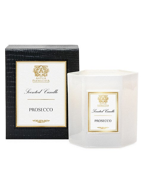Filled with soy-paraffin wax blend in a signature soft white glass, results in 60 hours of beautifully scented illumination. Packaged in a luxe hinged box, embellished with a pearlescent croc texture. Each decorative box includes a set of Antica’s signature matches.