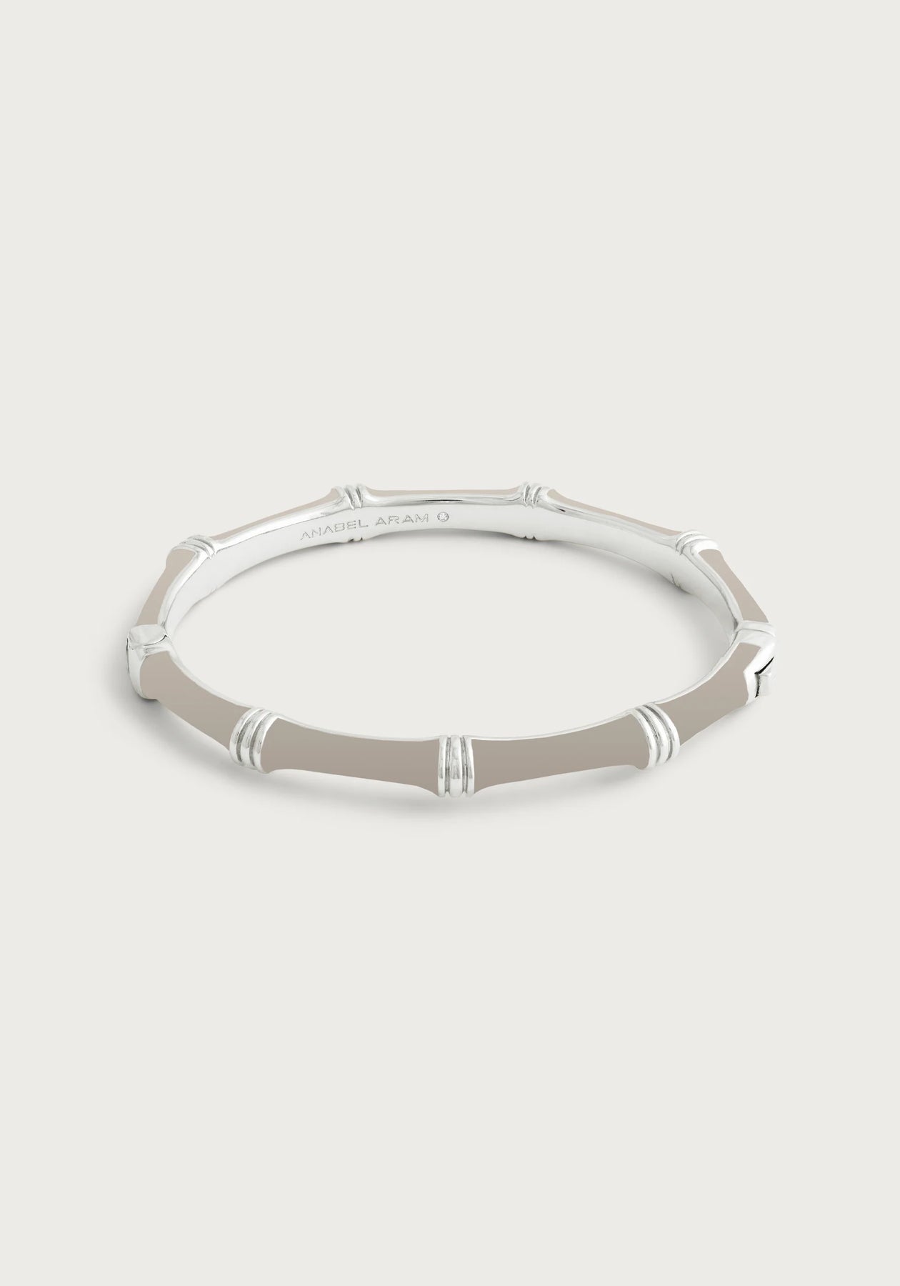 Elevate your everyday looks with the radiant allure of this bamboo hinged bangle, now in 4 new beautiful hand painted enamel colors. Crafted from striking sterling silver dipped brass, the bangle is sculpted to perfection, adorned with sparkling crystals that catch the light with every movement. Its secure hidden clasp, reminiscent of the finest jewelry craftsmanship, ensures both elegance and ease of wear, making it a refined accessory for any occasion. In the realm of accessories, this bamboo hinged bangle stands out as an exceptional piece of artistry. The intricacy of the sculpted design and the shimmering crystals culminate in a perfect union of glamour and versatility. The hidden clasp adds an element of mystery and refinement, making this bangle a stunning addition to your collection. Whether paired with casual or formal attire, it promises to be the perfect touch of sophistication, adding a radiant sparkle to your daily ensembles.