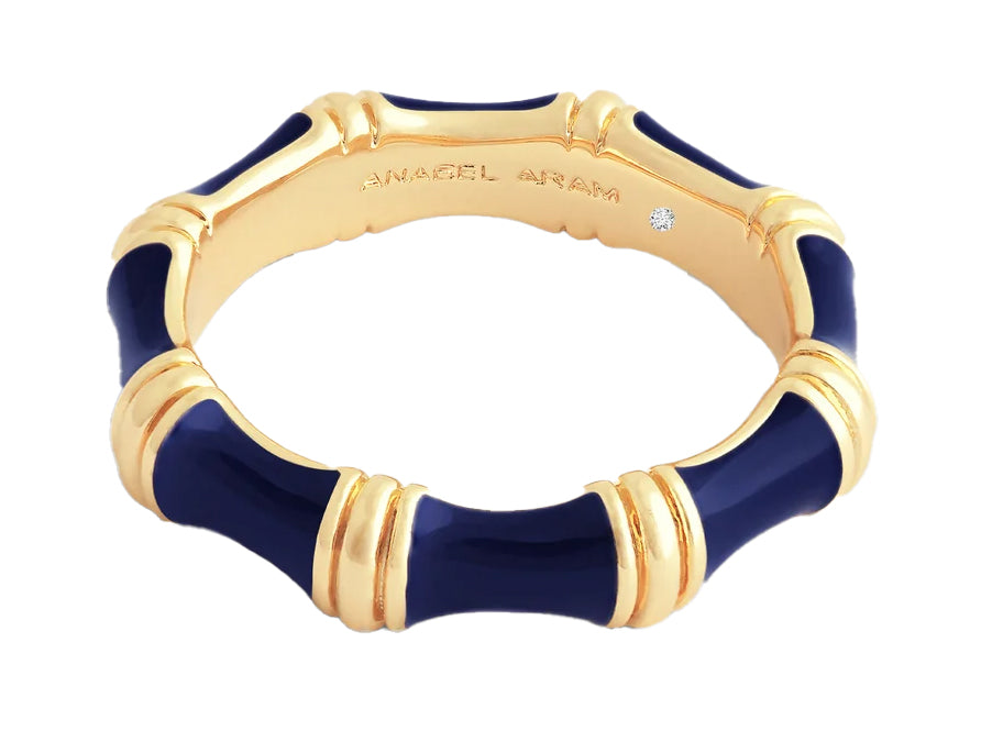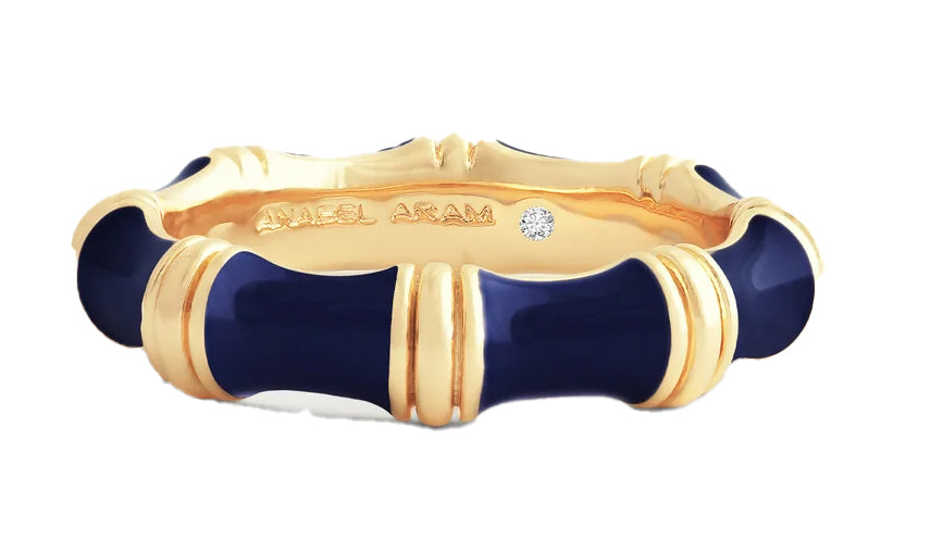 The Bamboo Enameled Ring, dipped in 18k gold and accented with hand-painted enamel, provides subtle sparkle in a timeless silhouette, effortlessly complimenting your everyday wardrobe.