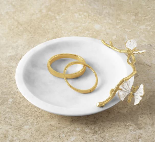 The Butterfly Ginkgo Gold Collection pays tribute to Michael’s original Butterfly Ginkgo Collection, which first debuted in 2007 and shortly thereafter became one of the most iconic motifs in Aram's oeuvre. With the launch of this second generation interpretation of one of his favorite collections, Aram breathes new life into one of his most poetic motifs with solid brass sculpts, polished to a gold hue, and featuring painted white enamel butterflies.