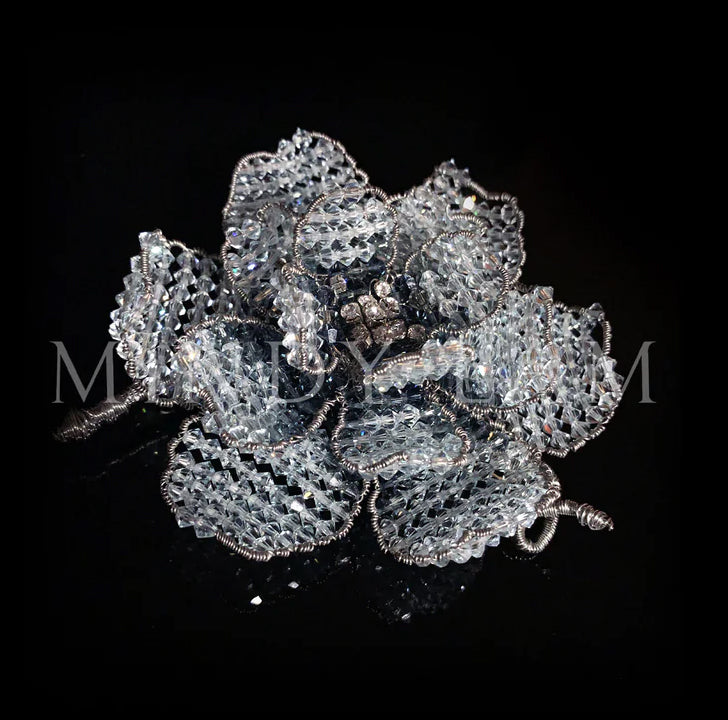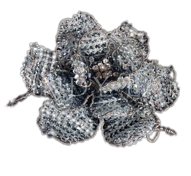 The Classic Peony Brooch in has been a staple since the inception of the brand in 2002. It is handcrafted with Swarovski crystals with a vintage rhinestone center. Always the perfect addition to blazers, sheaths, or wrapped onto existing pearls.
